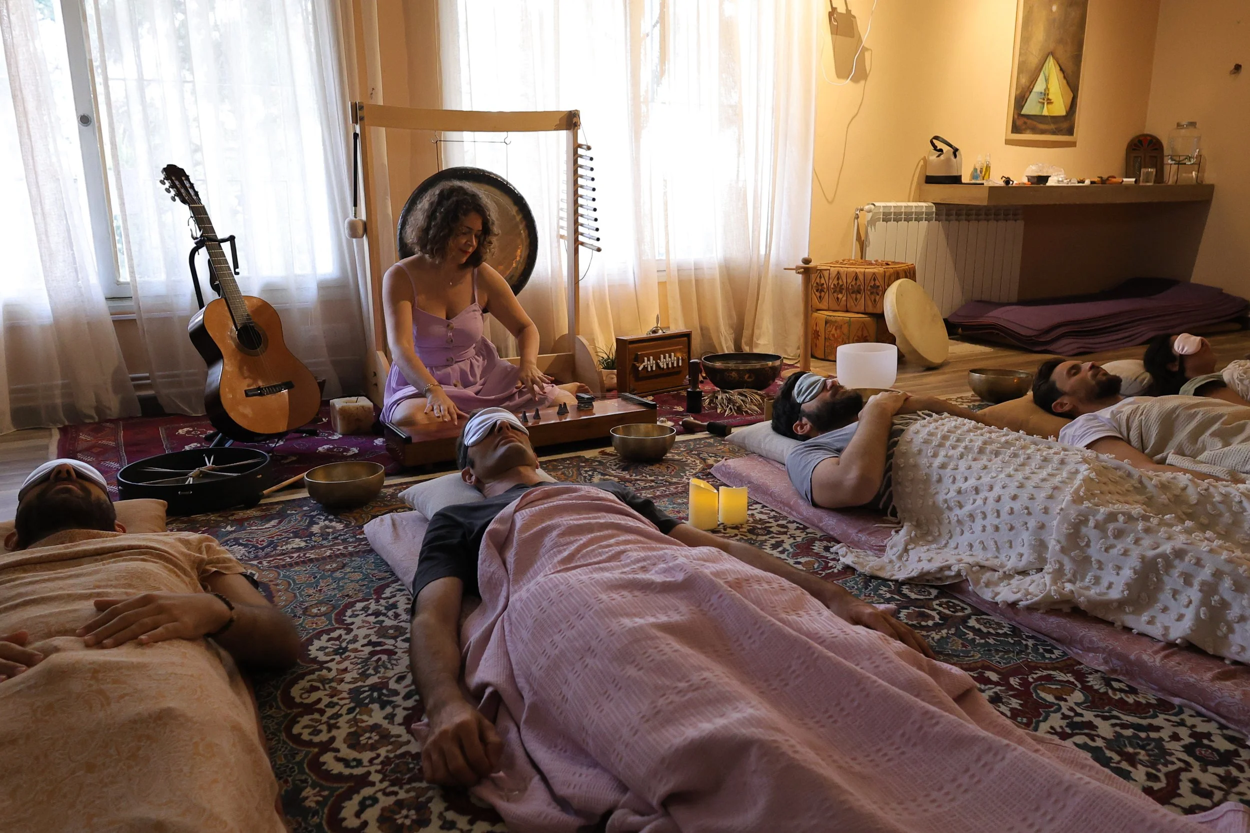 If you can't join our weekly group sound bath sessions or would like a more exclusive experience, you can book a Private Group Session (for 3 to 12 people) at AYANI Baabdat. These sessions are multi-instrumental Sound Journeys and are perfect for relaxing together, conscious gatherings, celebrations, reunions, birthdays, or simply a feel-good day. Together, you’ll journey into a state of deep relaxation, bliss, and stillness, surrounded by healing vibrations...